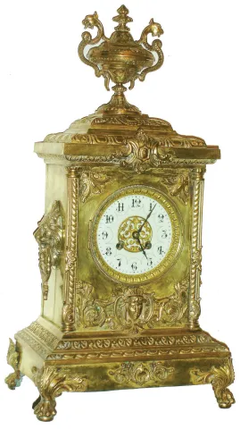 French cast brass 8 day time and strike mantel clock, c1890