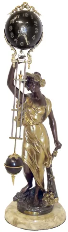 case finishes restored, support for clock replaced, now glued to figure, the clock portion is a reproduction with Ansonia style movement, spheres with...