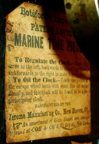 Jerome Manufacturing Co, (Chauncey Jerome), New Haven, Conn., 30 hour, paper mache front "Botsford Patent", balance wheel movement timepiece, c1850