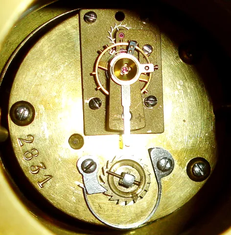 sash, neck, and right arm of figure repaired, restoration well done, shows only on close examination, case a bit dirty and with minor wear, dial with ...