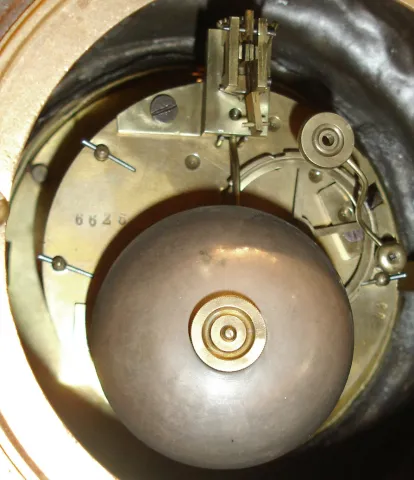 case with restored finishes, base of spelter clock case was broken, now glued and with a shim to plumb case, female figure originally held something i...