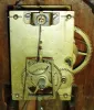 case in an old finish, box with repairs at hinges, throat and box frames replaced, glasses replaced, finial and plinth replaced, dial repainted, hands...