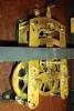 this large heavy wall clock appears to have a new Masonite back, covered in copper on the back, and the old painted metal dial has an extra winding ho...