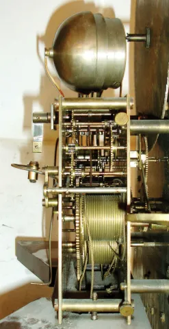 the case retains its original finish, nicely rubbed down to a matte appearance. There are vertical ages splits to front and each side of base. The e...