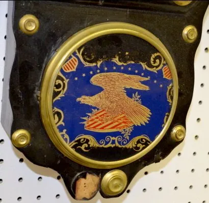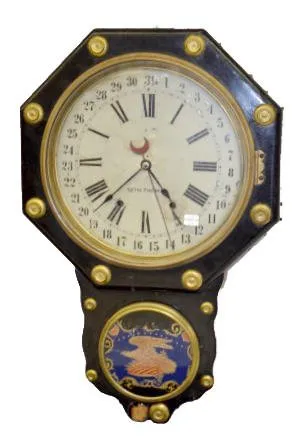 With a T & S movement; a marked dial and an eagle painted lower glass. (The dial is worn.) 26" Tall Not tested....