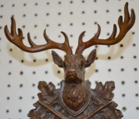 With an Elk head, a bird and rabbit. 18 1/2" Tall x 10 1/2" Wide Not tested....