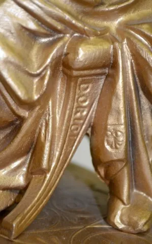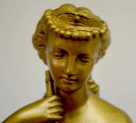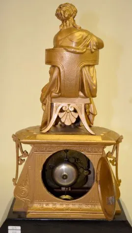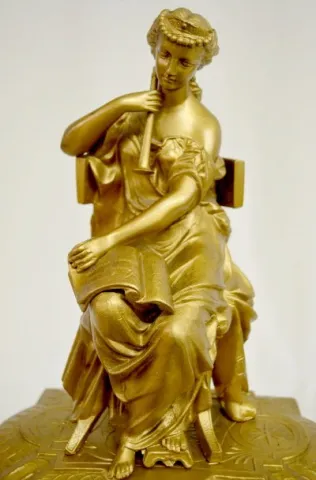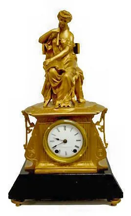 Seth Thomas & Sons # 8026: A female musician sits on the case top; marked porcelain dial; bell strike. Dial 3 1/2"; Clock 17 3/4 x 10 3/8" Running....