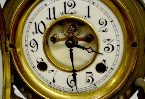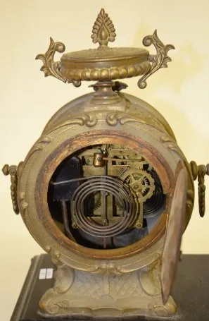 With open escapement and a porcelain dial. (There is some patina and paint roughness.) Not tested. Sells where is, as is....