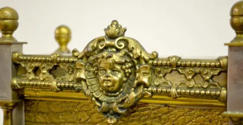 Bracket style with a cherub head and serpents; a porcelain dial; brass finials; peg feet and an 8 Day T & S movement with the pendulum. (The dial is c...