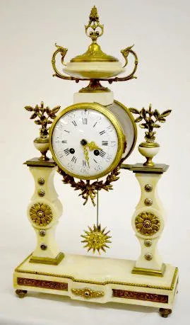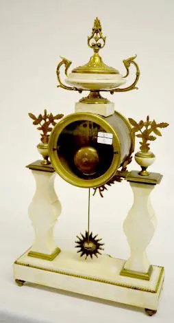 Ornate French Marble & Brass Antique Shelf Clock