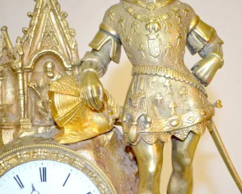 admin 16 March 2026 Clock image thumburl French T&S Knight with Sword Statue Clock Porcelain dial; silk thread suspension. 20? T... Subscribe here Manufacturer Unsigned Price Type auction Sort Price Subscribers only Price Realized Subscribers only Pre-Auction Estimate Subscribers only