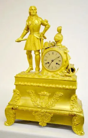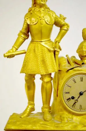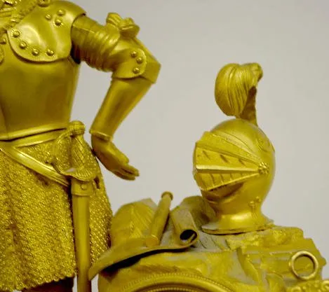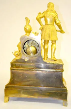 French Empire Bronze Dore Clock w/Knight