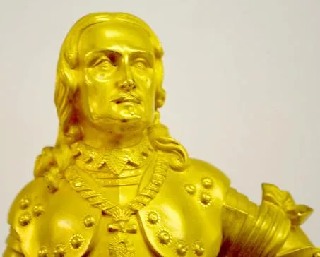 Circa 1830 with a French ormolu bronze figure of a knight in armor with an anchor and cannon. Inscribed ?Vierdaagsche Laeslag?. It is believed to be t...