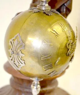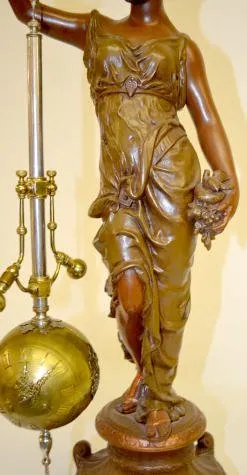 An ornate lady figure with a bird and nest; a brass and nickel 8 Day, T & Bell Strike movement; signed ?Flinois Blondeau?. Not tested....