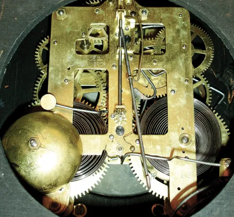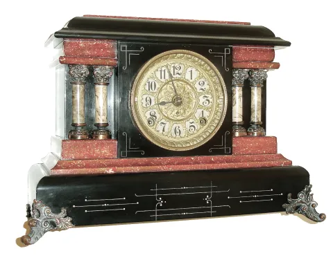 Seth Thomas Clock Co., Thomaston, Conn., 8 days, time and strike, spring brass movement Adamantine mantel clock, c1907. This is a special order or premium model not shown in catalogs.
