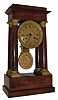 French, 8 days, time and strike, spring brass movement 4 column mini Empire portico mantel clock, c1900
