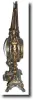 (signed on movement), a gilt bronze lyre clock, as-found. The bronze case is very unusual, with the extended wings of two caryatids forming the side wings of the lyre. Much of the gilding is worn off the case, so your choices boil down to re-plating, or simply buffing it all to brass. The well made bell strike movement, no. 2463, and with matching number pendulum (don't lose this pendulum, it only fits this clock). The cast bronze dial with individual porcelain cartouche numerals is perfect. An impressive piece that will respond well to restoration; height 23"