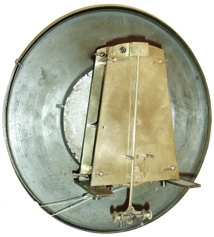 the case retains its original finish and the top and bottom outer finials are replacements. There are minor abrasions to moldings and a small dent in ...