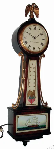 Hamilton-Sangamo, Lancaster Penna. and Springfield, Ill, mahogany electrically wound 7 jewel, time and strike, banjo wall clock, c1930