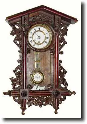 (signed on dial), time and alarm carriage clock in very good original condition, running and alarming. This is a cute little clock with some extra trim cast into the case around the top and bottom. Porcelain dial is perfect and all beveled glass is good. Height 5"