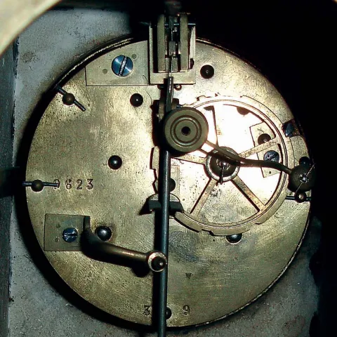 this large, heavy and fragile clock is in very good original condition with no losses or damage. The floral painted porcelain dial, and the beveled gl...