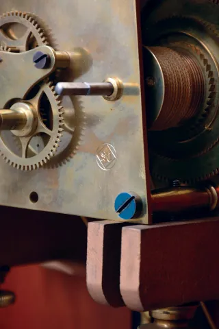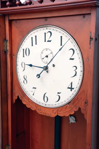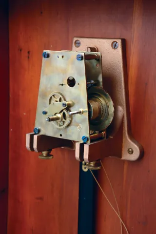 the dial mask is a little out of alignment, but can be corrected. This clock uses ST movement # 62, with a factory porthole to assist in adjusting the...