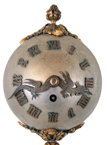 the figure has been repainted with small areas of loss and some very minor oxidation. The ball is stripped of finish. The dragon hands are wonderfully...