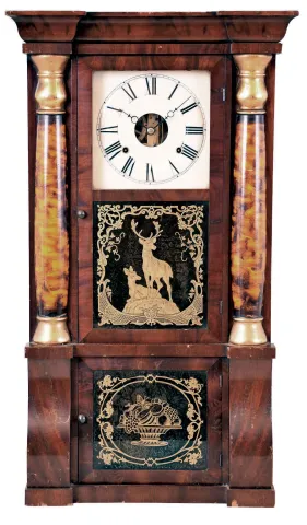 Seth Thomas Clock Co., Thomaston, Conn., Empire case "Shell Column" 8 day Column & Cornice shelf clock.