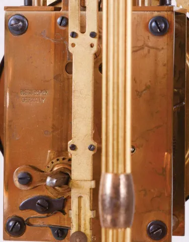 his large anniversary clock, with disc pendulum and Becker trademark, is in very nice original condition with some slight tarnish of the brass base Th...