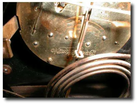 Dimensions:9 1/2" tall by 13" wide. Maker/Mfgr./Author/Artist:Waterbury Clock Co., Waterbury, Connecticut. Condition:Very good case with high quality ...