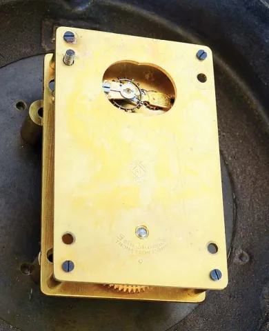 the heavy cast brass case, and the silvered dial, have been restored and lacquered. The bezel lock key is slightly small so the bezel may be difficult...