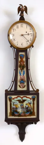 Waltham Clock Co., Waltham, Mass., 8 days, brass weight movement patent or banjo timepiece. Serial No. 7474