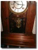 Shelf Clock c. 1875 Dimensions:24" tall by 15" wide Maker/Mfgr./Author/Artist:Unknown Condition:Excellent-with replaced movement; runs and strikes perfectly. Dial has been professionally restored (recovered). Circa:Ca 1875 Materials:Solid Walnut case; brass movement; painted metal dial. Description: The case once housed a weight driven 30 hour movement. One former owner had it converted to a spring wound 8-day mechanism.