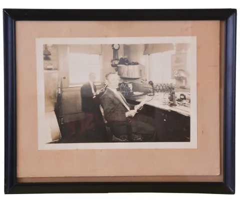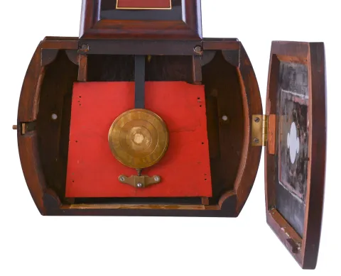 case refinished, bottom replaced, weight baffle missing, glasses appear to be original, dial with crazing and minor scratches, movement ticking, weigh...