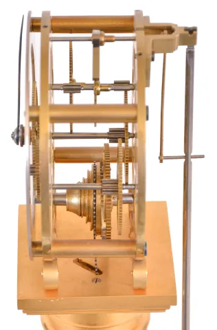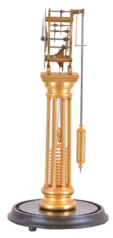 the plinth on which the column rests is missing, clock is otherwise in good condition, gilding a bit dirty, dial with a few stains, hands good, pendul...
