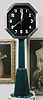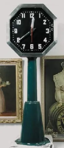 on cast iron base, octagonal double sided clock with stainless steel custom bezel and green neon tubing. Size: 90 high, 32 wide. Condition: Excellent;...