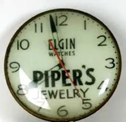 the 15 dial marked "Elgin Watches Piper's Jewelry". CONDITION: Do not know if it works. Structurally it appears to be all there....