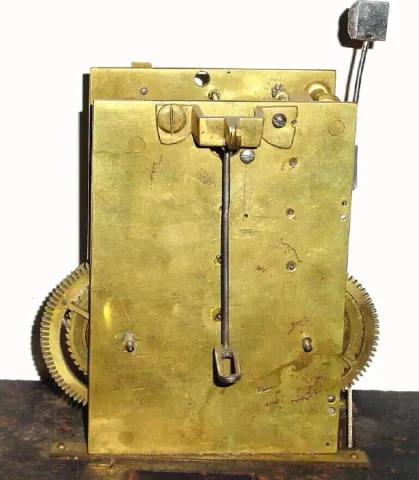There is no dial, hands, pendulum or weights, and movement is dusty from setting in the open. The gathering pallet for the rack is missing along with ...
