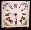 There have been various veneer repairs on the case and someone started to strip it, and did not finish the job. The above average dial, hands and upper glass are original. The lower tablet is a replacement. Worth completing the restoration. Height 26"