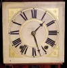 C.1845, Unknown Connecticut 30-hour wood movement bevel case shelf clock. This clock has lost it's label. It is probably a Chauncey Boardman. The veneer is in nice condition with no visible damage. The dial, hands, and upper glass are original (bottom now clear). The dial has a couple of age lines in the paint, but is still quite bright. Note case has been stripped and brushed with a heavy coat of spar varnish. Height 27"