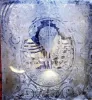 The mahogany veneer on the molding has had some excellent repair work. The original dial has some paint loss; both glasses are original. The frosted tablet is especially nice of a hot-air balloon. The clock has a very clean label. Spade hands are not original. Nice label now protected under plastic. Height 193/4"