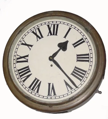 C.1900, English, Large Single Fusee Hanging Street clock, with 24" dial, in need of restoration, but certainly the most substantial fusee clock you will ever see. The movement (measuring 8 x 9 1/2 ") has a 4" spring barrel and a fusee to match, plus Graham style dead beat escapement, and mounts in the case on a large seat board. The case itself is brass and brass veneer over wood. The entire assembly is well over 100 pounds. The retaining screws for the original hands have been lost and the pendulum is a replacement. Absolutely NO commercial shipping on this piece; must go by blanket wrap or be picked up in person. Height 30"