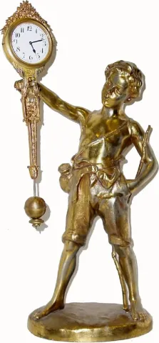 This is a fairly photogenic item, but we are not sure the clock arm was always with the statue. The jewel bar is new and is soldered into the boy's ha...