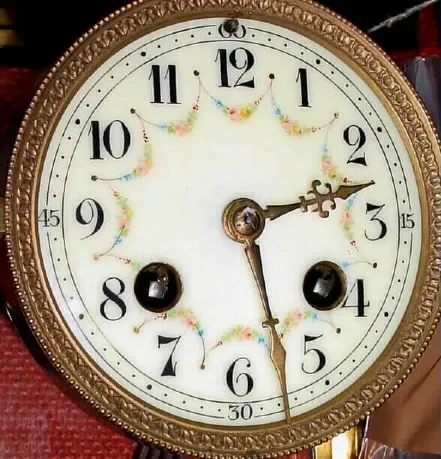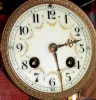 This is a Corniche case with no damage to the beveled glass; minor scrapes in brass case. The porcelain dial is perfect with original hands and mercury pendulum. However one of the screws to the gong has been lost and there is a repair to the strike hammer. Runs and strikes, but would benefit from service. Height 9 3/4"