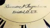 This is an uncommon clock that deserves some restoration. The tips to all 4 finials are absent. There are some small veneer repairs and other losses that need attention. The dial has some paint loss around the winding holes, and still has a very good signature. The escutcheon is missing from the door. The lower frosted glass tablet is original, and the lyre design is of exceptional quality. The movement is signed. Hands are replacements. Biggest item to comment on is the center base of the clock has been drilled out with a brace and bit by someone who thought the pendulum leader hooked to the verge rather than its post and needed a recess in which to swing. (you can verify this incorrect thinking easily) It does keep time well above this cavity. Full label with stain at bottom. Height 19 1/4"