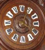 clock in good original condition. The case has heavy scrolls and grapes with grape leaves in a very pleasant style with rococo influence. The well made French movement strikes the hours and halves on a coiled wire gong. All 12 porcelain signet numerals are good, and with original pierced brass hands. Running briskly. Height 28"