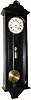 , with poor restorations (but decent looking). The old parts of this case are the back, sides and door. The top and bottom are new, with moldings from Home Depot. Pend bob with several small dents. The movement itself is a high quality Viennese unit, clean, and runs reliably on small 1 pound weight. Perfect as a decorator clock for an office or other area where you would worry about public access to a better clock. Height 39"