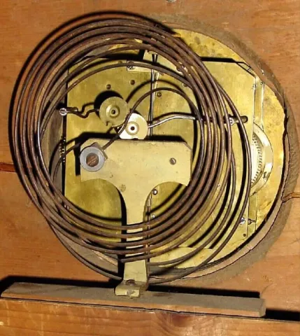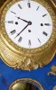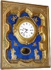 C.1810, Austrian, Grand Sonnerie, picture frame clock, as-found in fair condition. This clock is running and striking the quarters, but the case suffers from some losses: the outer door frame and glass are absent completely (still, even a modest carpenter can cut a frame to fit), and the gold leaf areas have been brushed over with gold paint; the dial with some chips around the winding arbors. Otherwise this is a good early 18th century clock with original silk-thread movement, hands, gong assembly and pendulum. Our estimate reflects condition. Height 21 1/2"
