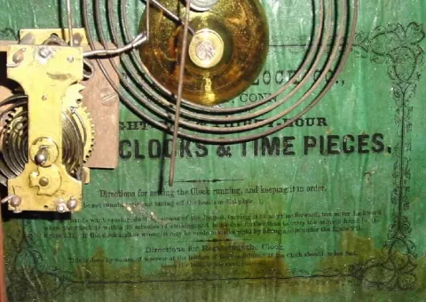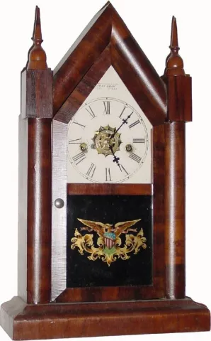 C.1880, Waterbury Clock Co., for Juan Shaw, Buenos Ayres (original stencil intact at top of dial), 30-hour t/s/alarm steeple in fair to good condition, with restorations.
