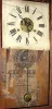 The clock has some veneer problems along the bottom edge and both sides. The wood dial has a crack near the top edge. The mirror is old. The upper glass is original. The label is interesting as it states "Extra clocks with Jerome's improvements cased and sold by J. Lane, Southington, Connecticut". Height 24"